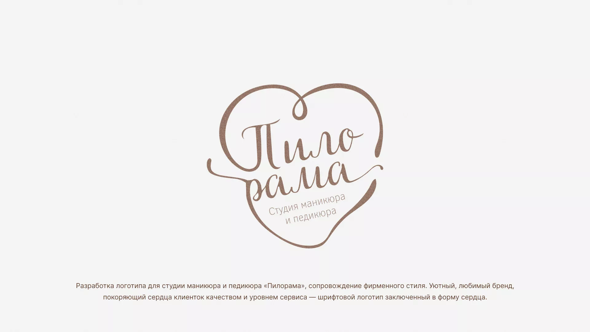 Разработка логотипа в Светлогорске для студии маникюра и педикюра «Пилорама», сопровождение фирменного стиля. Уютный, любимый бренд, покоряющий сердца клиенток качеством и уровнем сервиса — шрифтовой логотип заключенный в форму сердца.
