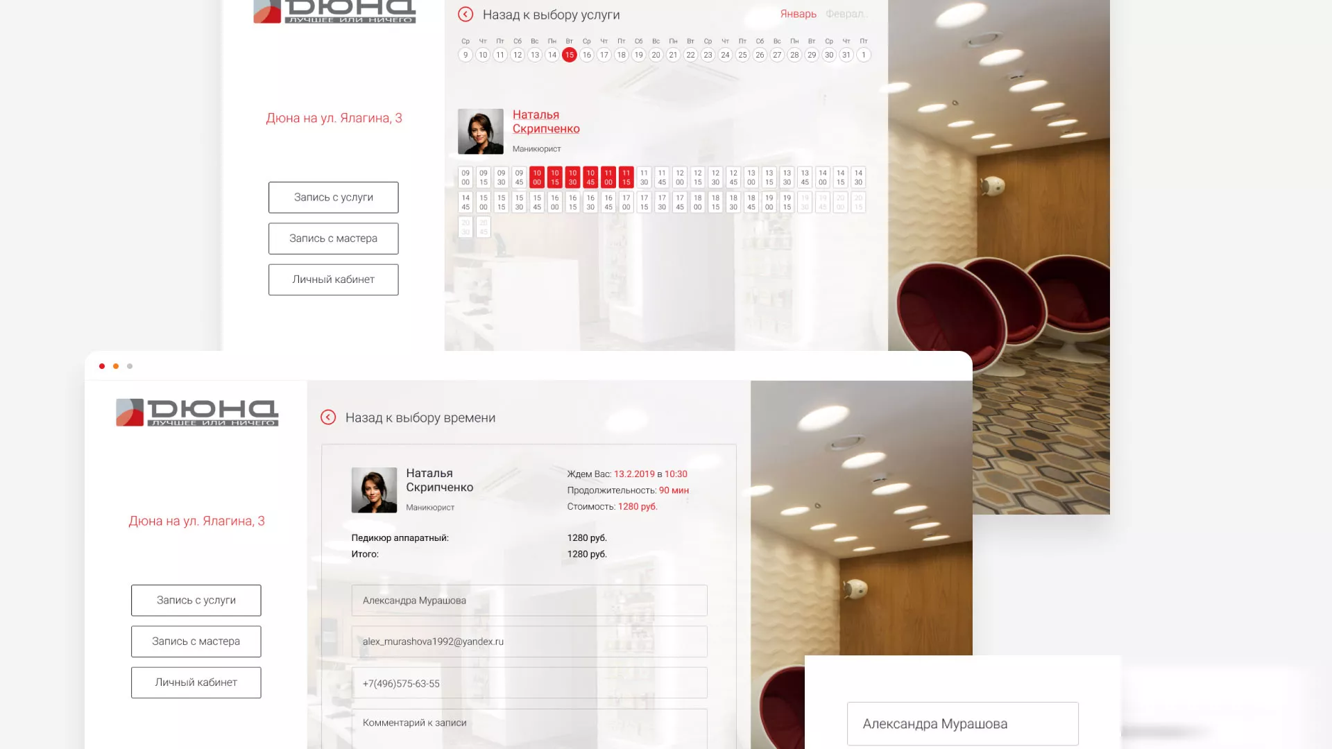 Такой инструмент, как онлайн-запись позволит клиентам записываться в салоны красоты в Светлогорске самостоятельно, в любое время суток, будь то раннее утро или поздний вечер, так как интерфейс сервиса интуитивно понятен и удобен каждому клиенту. А для салона — это возможность принимать заявки в режиме 24/7.